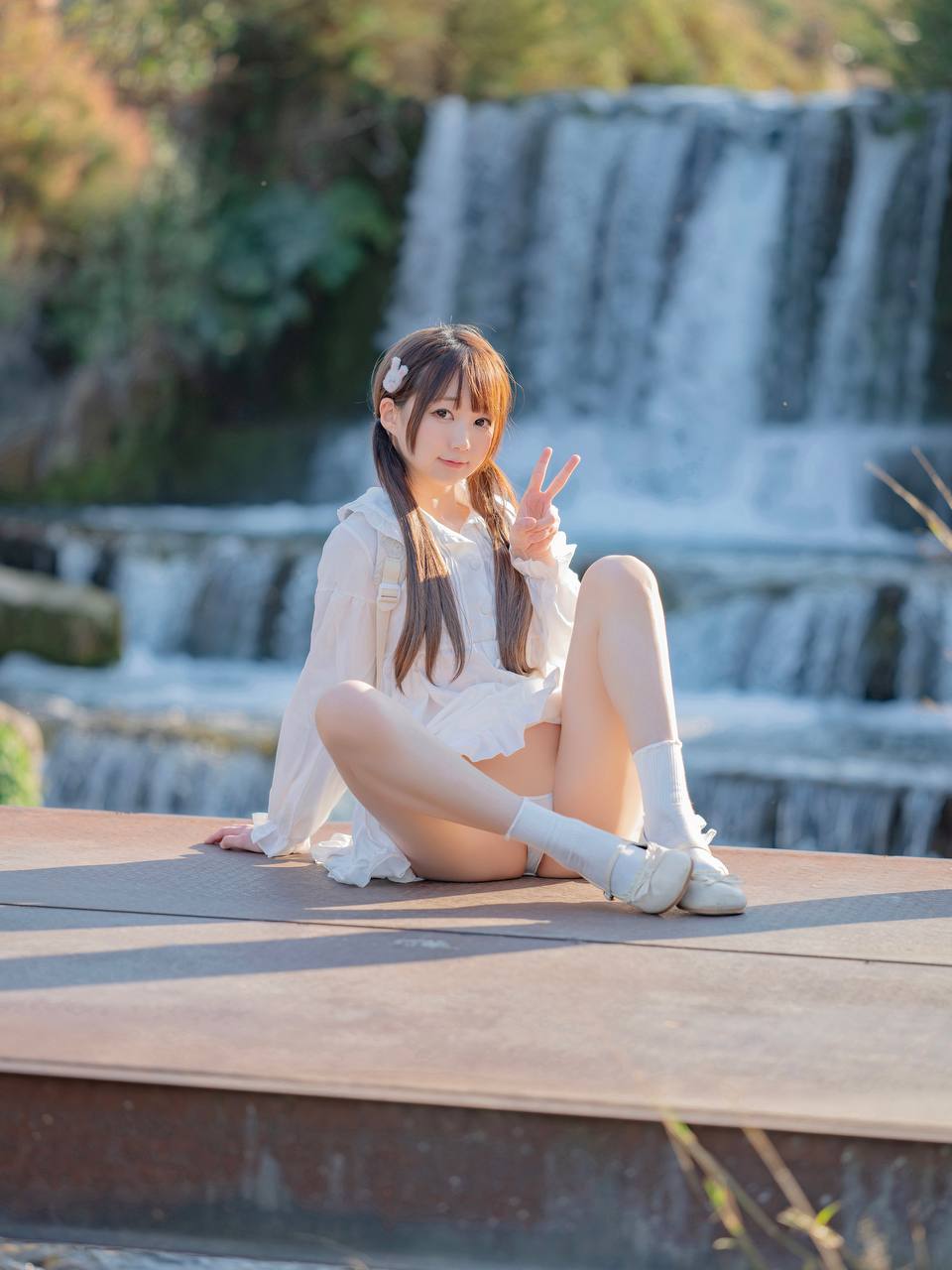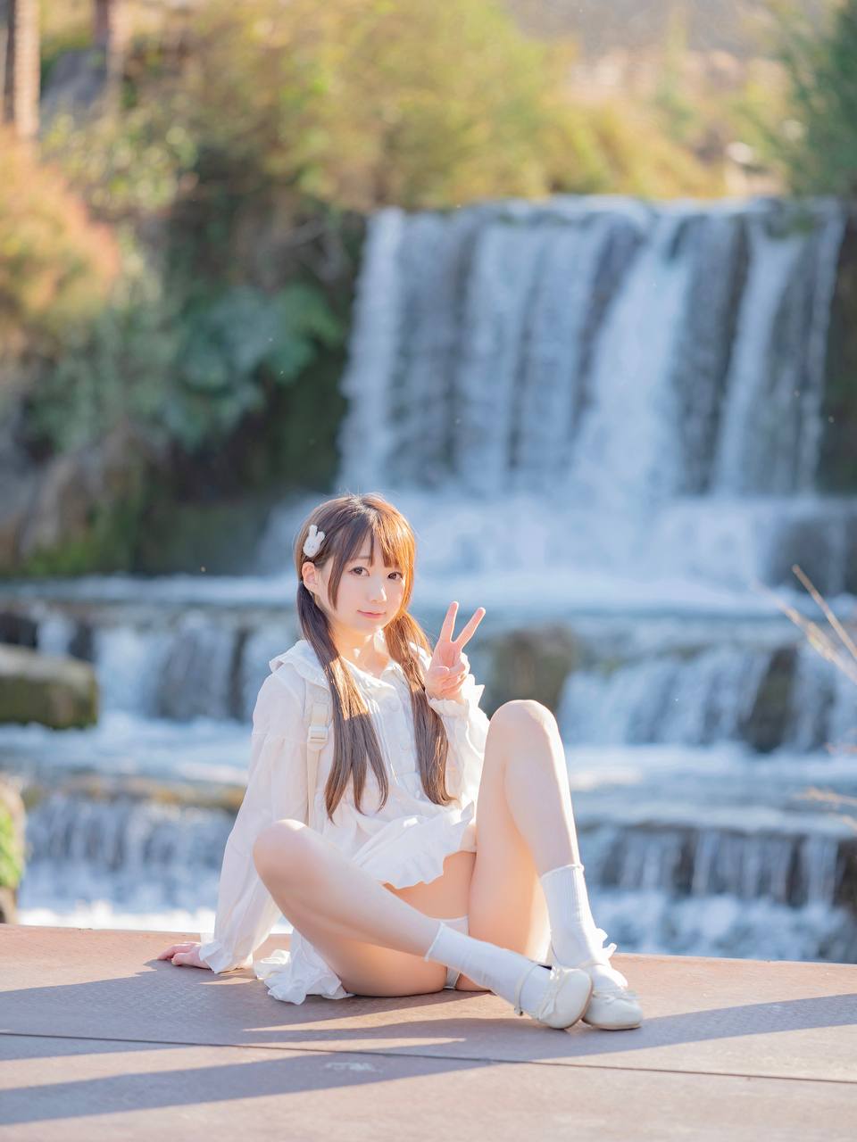瀑布边的少女【注册可看高清大图】